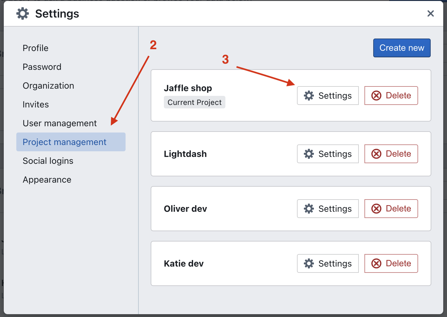 Project settings