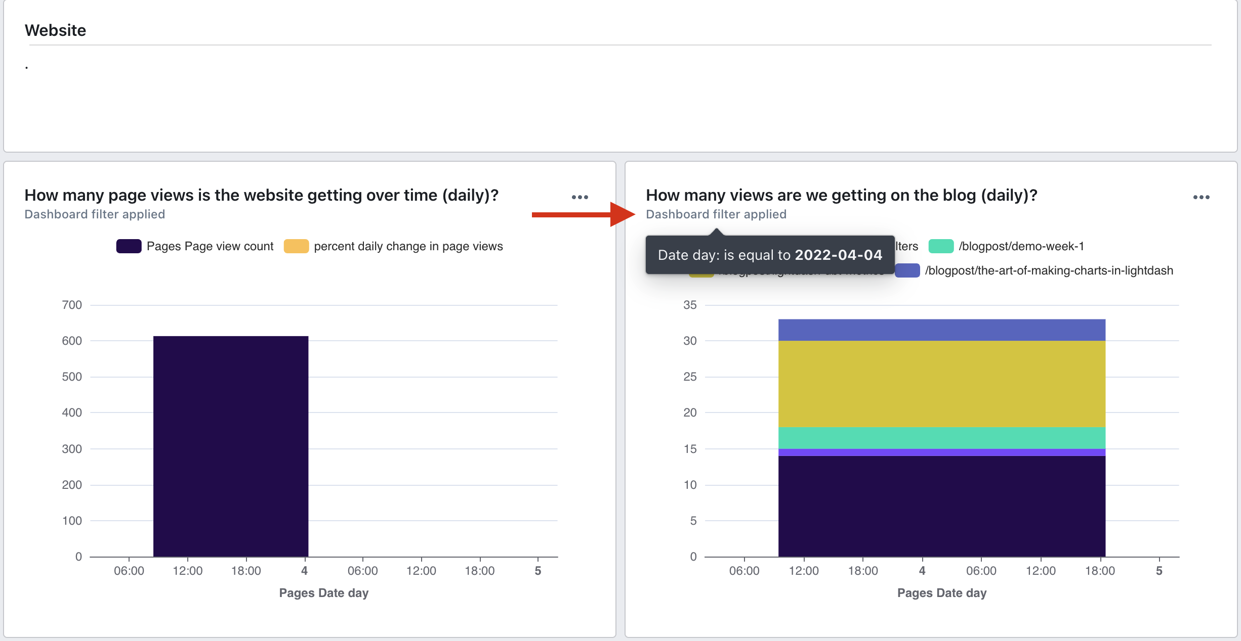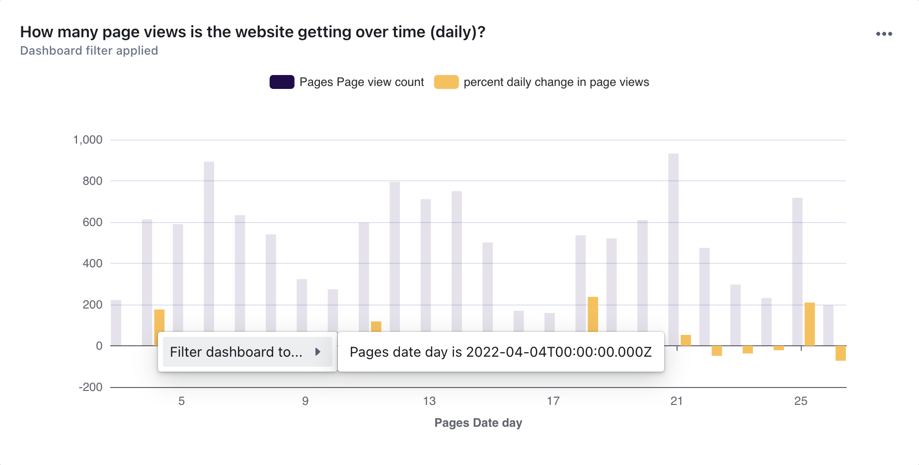 Once you've clicked on your filter, all of the tiles in your dashboard with the filter field will be filtered to the value you selected.