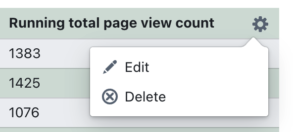 5. To delete or edit your table calculation, just click on the gear icon by the field nameโ