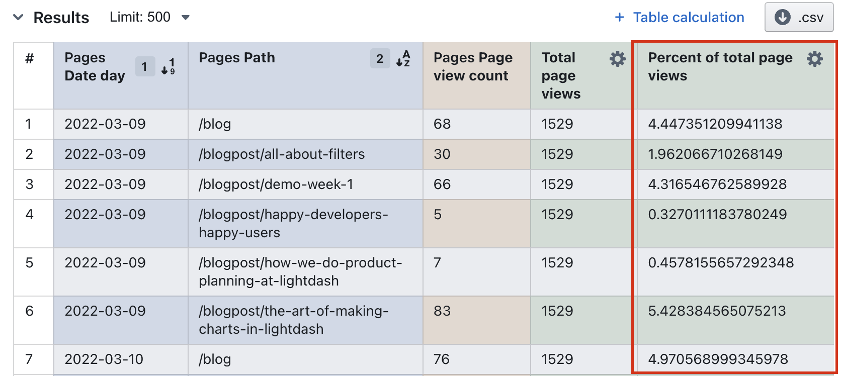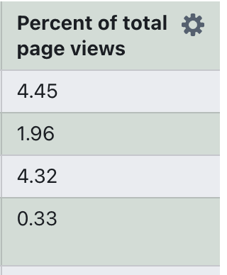 ${pages.page_view_count} * 100 / SUM(${pages.page_view_count}) OVER()